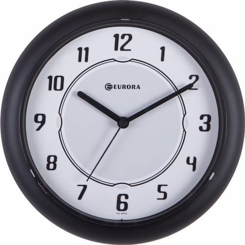 Relógio de parede Eurora 650500-034 preto mostrador branco redondo Marca: Eurora - Nacional Código: 650500-034 Medida: 24cm x 3cm Base: Plástico injetado Visor: Acrílico Mecanismo: Step Estilo: Moderno Botões de regulagem na parte traseira do produto Usa 1 pilha AA 1,5V- Pequena Não inclusa de 1 ano Marca: Não Informado