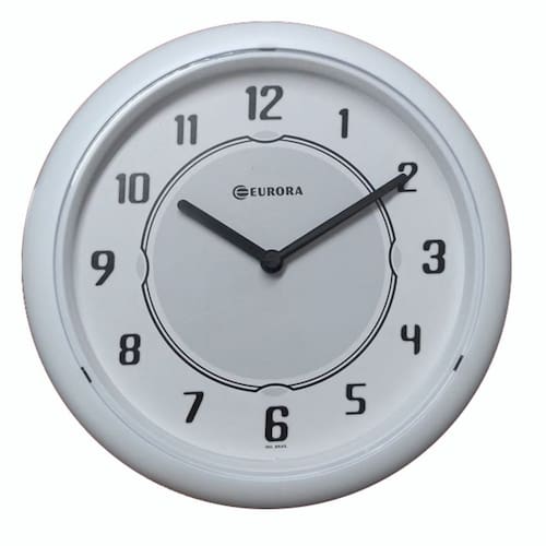 Relógio de parede Eurora 650500-021 branco redondo Marca: Eurora - Nacional Código: 650500-021 Medida: 24cm x 3cm Base: Plástico injetado Visor: Acrílico Mecanismo: Step Estilo: Moderno Botões de regulagem na parte traseira do produto Usa 1 pilha AA 1,5V- Pequena Não inclusa de 1 ano Marca: Não Informado