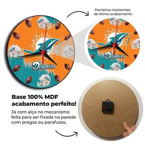 Relógio de Parede Futebol Americano Decoração Miami Dolphins