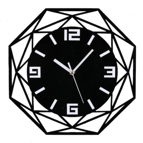 Material: Material da concha: acrílico Material do espelho: Nenhum Material do mostrador: acrílico Tamanho: 12 polegadas Peso: 500 g Design geométrico exclusivo: apresenta uma impressionante moldura de acrílico em forma de diamante com números em negrito para uma aparência moderna e artística. Silencioso e sem tique-taque: opera com um mecanismo silencioso de quartzo, ideal para quartos, escritórios ou salas de estar onde a tranquilidade é importante. Construção acrílica durável: feita de acrílico de alta qualidade para uma estética elegante e contemporânea, garantindo um uso duradouro. Números fáceis de ler: números brancos grandes contrastam com o fundo preto, facilitando a leitura à distância. Decoração de casa versátil: uma mistura perfeita de minimalismo moderno e elegância, ideal para adicionar um toque elegante à sua casa ou escritório.