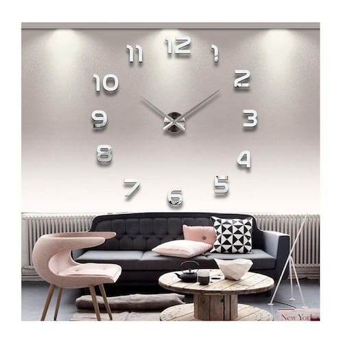 Relógio de parede Gigante sem fundo. Você cola os números auto adesivos na parede, pendura o relógio central e está pronto. Peso: 350g Diâmetro: 940mm Estilo: Moderno Quartzo Material: Acrílico Característica: MUTE Material do Corpo: ACRYLIC+EVA Aplicável - Salas
