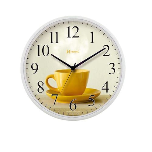 Relógio De Parede Herweg 660098-021 Tamanho: 26cm de diâmetro X 4cm de espessura Maquinário: Step Tic-tac Cor do fundo: Branco com xícara de café Cor da Estrutura: Branco Base: Plástico injetado Vidro: Acrílico Usa pilha AA Fabricado por HERWEG RELÓGIOS com de 1 Ano Ean: 7897280354526