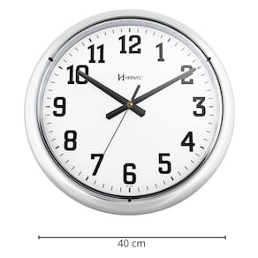 Marca: HERWEG Modelo: 6129 - 070 Tipo de relógio: Analógico Formato: Redondo Alarme: Não Cor da caixa: Prata Metálico Cor do fundo: Branco Tema: Liso Material da Caixa: Polímeros diversos Características do vidro: Acrílico Tamanho da caixa: 40 cm Espessura da caixa: 5 mm Peso: 1.280 Gramas Alimentação: 1 pilha1 AA 1,5 volt – a pilha não acompanha o produto Garantia do Fabricante: 12 meses Prazo de validade: Indeterminado Fabricante: HERWEG – Indústria Brasileira