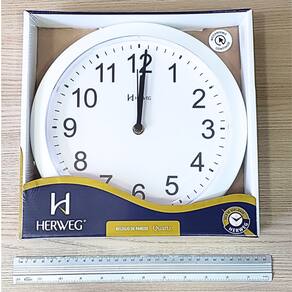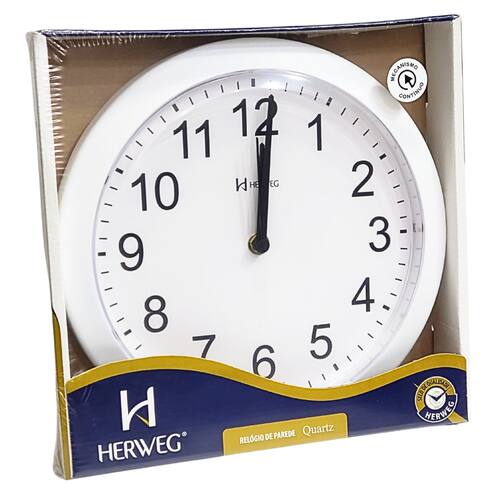 Marca: HERWEG Modelo: 660043 - 021 Tipo de relógio: Analógico Alarme: Não Cor da caixa: Branco Cor do fundo: Branco Tema: Liso Material da Caixa: Polímeros diversos Características do vidro: Acrílico Tamanho da caixa: 26 cm Espessura da caixa: 5 mm Peso: 355 Gramas Alimentação: 1 pilha1 AA 1,5 volt – a pilha não acompanha o produto Garantia do Fabricante: 12 meses Prazo de validade: Indeterminado Fabricante: HERWEG – Indústria Brasileira