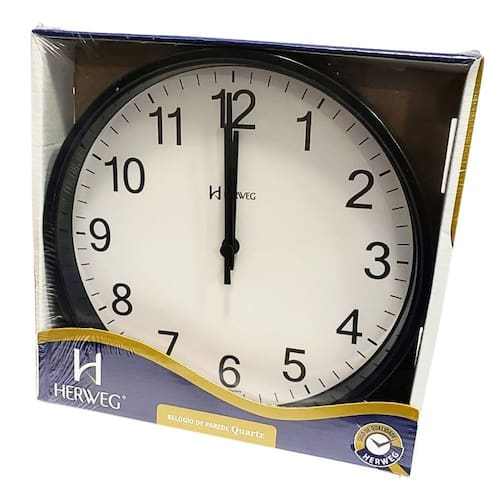 Marca: HERWEG Modelo: 6101 Tipo de relógio: Analógico Cor da caixa: Preto Cor do fundo: Branco Material da Caixa: Plástico Características do vidro: Acrílico Tamanho da caixa: 21,5 cm Espessura da caixa: 4 mm Peso: 200 Gramas Alimentação: 1 pilha AA 1,5 volt – a pilha não acompanha o produto Garantia do Fabricante: 12 meses Fabricante: HERWEG – Indústria Brasileira