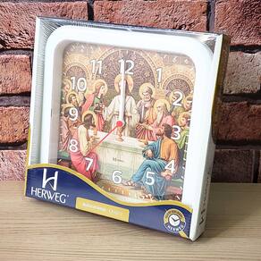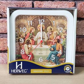 Marca: HERWEG Modelo: 6696 - 021 Tipo de relógio: Analógico Alarme: Não Cor da caixa: Branco Cor do fundo: Imagem Tema: Santa Ceia Material da Caixa: Polímeros diversos Características do vidro: Acrílico Tamanho da caixa: 23 cm Espessura da caixa: 4 mm Peso: 315 Gramas Alimentação: 1 pilha1 AA 1,5 volt – a pilha não acompanha o produto Garantia do Fabricante: 12 meses Prazo de validade: Indeterminado Fabricante: HERWEG – Indústria Brasileira