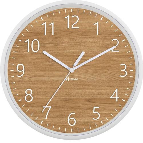 Relógio De Parede Herweg Ref: 660135-021 Estilo Madeira DESCRIÇÃO DO PRODUTO: Medidas: 26D x 4E cm Características Técnicas: Usa pilha AA Mecanismo Step Tic-Tac Produto Nacional Informações sobre o produto: Relógio de parede Base em Plástico Injetado Botões de regulagem na parte traseira do produto Cor da Base: Branco Cor do Mostrador: Estilo Madeira com números de 1 ano