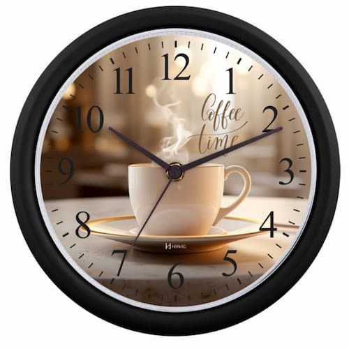 Relógio De Parede Herweg Ref: 6672-034 Preto Xícara DESCRIÇÃO DO PRODUTO: Medidas: 22D x 4E cm Características Técnicas: Usa pilha AA Mecanismo Step Tic-Tac Produto Nacional Informações sobre o produto: Relógio de parede Base em Plástico Injetado Botões de regulagem na parte traseira do produto Cor da Base: Preto Cor do Mostrador: com números e foto de uma xícara de porcelana branca de 1 ano Marca: Não Informado Ean: 7897280333798