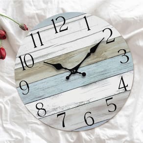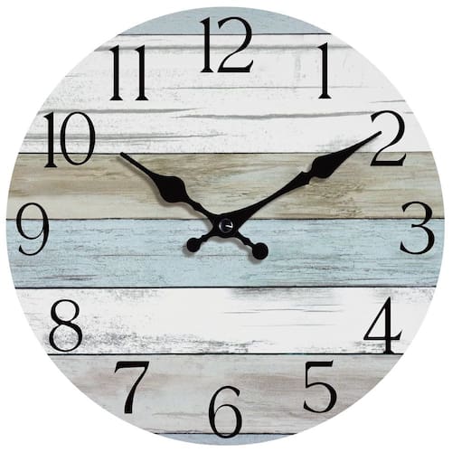 12 inch wall clock silent wall clock battery operated decorative for kitchen bathroom - 1. MATERIAL DE PAREDE CLCOK - Relógio de parede rústico de madeira, sem madeira maciça, é com material MDF. Ponteiro de minuto de metal preto com mostrador grande, sem ponteiro de segundos, sem moldura ou tampa de vidro. - 2. Funcionamento silencioso: o relógio de parede usa mecanismo silencioso sem tique-taque de alta qualidade com movimento suave, não tem ponteiro de segundos, é silencioso e mantém a hora precisa. - 3. Fácil de pendurar – o relógio de parede é fácil de pendurar, tem um design de slot na parte de trás e a embalagem contém um gancho para instalação. Alimentado por uma pilha AA (não incluída na embalagem) - 4. Decoração e presente – Relógio de parede de madeira elegante vintage, é uma decoração perfeita para escritório, sala de jantar, escola, sala de aula, casa. E é um bom presente para o Dia das Mães, Natal, Dia de Ação de Graças - 5. GARANTIA DE SERVIÇO - Se houver algum problema com o produto, imediatamente, você pode nos enviar uma mensagem da Amazon e ajudaremos você a lidar com qualquer dúvida.
