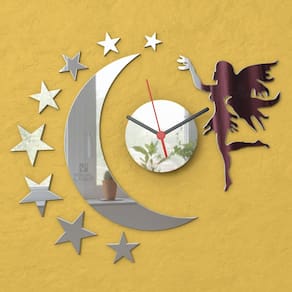 Relógio de parede para sala, cozinha, sala de estar ou onde desejar. A fixação é feita por fita dupla face em superfícies lisas como azulejos, parede, gesso, madeira, painéis e afins. Pode ser fixado da maneira que desejar ou como na imagem. Produto- Espelho decorativo Grande em acrílico espelhado Fabricante: Visual Laser acrílicos Aplicação: Pode ser aplicado em qualquer superfície lisa onde a fita tenha aderência, Parede, papel de parede, gesso liso sem textura, azulejo, madeira ou em outros móveis Tamanho: 40 cm - aproximadamente quando montado São 10 peças Proteção: Todas as peças são enviadas com película protetora que deve ser retirada pelo cliente, Para removê-la, force com a unha na ponta até que suba um plástico e a remova com cuidado. : Garantimos que todas as peças chegarão intactas e sem arranhados, caso contrario enviamos novamente a peça que sofreu danos mediante comprovação. Limpeza: Para limpeza é indicado apenas um pano úmido, sem qualquer outro tipo de produto podendo danificar a peça. Ean: 7908097605623