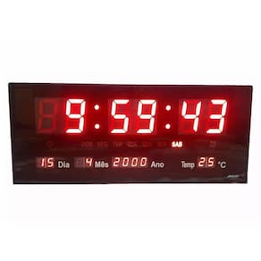 Relógio Digital - Termômetro - Calendário com Led. Tamanho grande Led vermelho. Visualização a distância. Exibição, minutos, ano, mês, data, temperatura hora.
