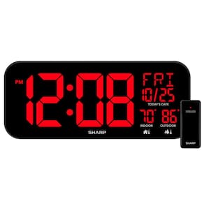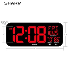 Chega de apertar os olhos! Verifique a hora em qualquer lugar da sala!! Precisa de um relógio que seja fácil de ler do outro lado da sala? O relógio de parede LED SHARP (SPC946AMZ) tem números grandes para que você possa vê-lo de qualquer ângulo. Os dígitos brilhantes o tornam visível à distância para que você possa verificar a data e a hora sem apertar os olhos. Basta ligar e montar o relógio em uma parede ou mesa. Os ajustes de horário de verão são simples com um botão na parte de trás do relógio que moverá o tempo +1/-1 hora com um único toque de um botão. Tela gigante com design fino e elegante mede 14,7 cm de altura, 35 cm de largura e 3,8 cm de profundidade. Kit de relógio LED perfeito para paredes da sua cozinha, decoração do quarto, porão, garagem, parede da sala de aula, estúdio, academia ou galpão. Grande visor de 10 cm de altura com números grandes e fáceis de ler e controle de intensidade de intensidade de luz de 3 passos. A tela fácil de ler tem calendário de 2,5 cm de altura e exibição de dia da semana e exibição de temperatura interna e externa de 2,5 cm para facilitar a visualização em todo o escritório, sala de aula ou sala de estar, temperatura interna e externa – O SHARP SPC946 é diferente da maioria dos outros relógios no mercado porque tem temperatura interna e externa. O sensor externo sem fio (incluído) transmite a temperatura externa para o relógio de parede digital SHARP SPC946. O sensor pode ser colocado em qualquer lugar dentro de 30 metros da unidade receptora. A tecnologia sem fio significa que nenhuma instalação de fio é necessária para a funcionalidade de temperatura externa. Aberturas para facilitar a montagem na parede e um suporte traseiro dobrável para colocação de mesa ou prateleira. A função de enrolar o cabo na parte de trás do relógio mantém qualquer cabo extra limpo e arrumado. Operado elétrico com bateria reserva. Lembra o tempo em caso de falta de energia com baterias de reserva opcionais. A função de reserva requer 2 pilhas alcalinas AAA (não incluídas) - Tela gigante com design fino e elegante mede 14,7 cm de altura, 35 cm de largura e 3,8 cm de profundidade. Kit de relógio LED perfeito para paredes da sua cozinha, decoração de quarto, porão, garagem, parede da sala de aula, estúdio, academia ou galpão - Tela grande de 10 cm de altura com números grandes e fáceis de ler e controle de intensidade de intensidade de luz de 3 passos. A tela fácil de ler tem calendário de 2,5 cm de altura e exibição de dia da semana e exibição de temperatura interna e externa de 2,5 cm para facilitar a visualização em todo o escritório, sala de aula ou sala de estar - Temperatura interna e externa – O SHARP SPC946 é diferente da maioria dos outros relógios no mercado porque tem temperatura interna e externa. O sensor externo sem fio (incluído) transmite a temperatura externa para o relógio de parede digital SHARP SPC946. O sensor pode ser colocado em qualquer lugar dentro de 30 metros da unidade receptora. A tecnologia sem fio significa que nenhuma instalação de fio é necessária para a funcionalidade de temperatura externa. - Aberturas na parte de trás do relógio para facilitar a montagem na parede e um suporte dobrável para colocação de mesa ou prateleira. A função de enrolar o cabo na parte de trás do relógio mantém qualquer cabo extra limpo e arrumado. - Operado elétrico com bateria reserva. Lembra o tempo em caso de falta de energia com baterias de reserva opcionais. A função de reserva requer 2 pilhas alcalinas AAA (não incluídas)