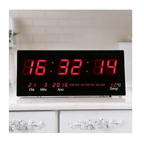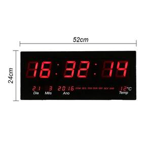 Relógio de parede ideal para sua casa, escritório ou qualquer outro ambiente, produto de aparência moderna e elegante. Ideal para consultórios, escritórios, academias, residências e comercio em geral. Números grandes de fácil visualização, fácil ajuste e Instalação, sistema eletrônico de quartz, não atrasa nem adianta, não perde a memória quanto acaba a energia. Fácil visualização à distância Só funciona ligado na tomada Características : Excelente Nitidez. Funciona no escuro. Tipo de Relógio: Parede / Estante Temperatura Hora Dia / Mês Calendário Dia da semana Especificações : Largura: 52 centímetro Altura: 24 centímetro Profundidade: 4 centímetro Bivolt (110 V / 220 V) Peso Aproximado: 0,400kg Itens Inclusos : 01 - Relógio de Parede/Mesa/Instante 01 - Fonte 01 - Manual de instruções (Em português)