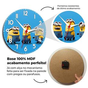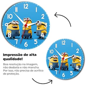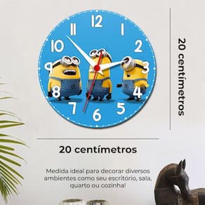 - Mecanismo Silencioso Sem Tic Tac - Medidas : Altura: 20cm x Largura: 20 cm x Espessura: 3 mm - Mecanismo QUARTZ, usar 1 pilha AA (não inclusa); - Materiais Base: MDF corte a Laser - Imagem: Impressão de alta qualidade - Laminado: Não desbota com o tempo - Embalados em caixas individuais.