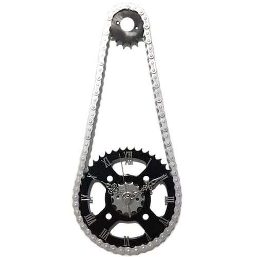 Relógio de parede moto corrente e coroa em aço decorativo cromado relógio de parede - moto corrente e coroa em aço decorativo