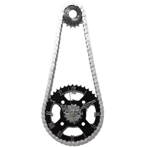 Relógio de parede moto corrente e coroa em aço decorativo cromado relógio de parede - moto corrente e coroa em aço decorativo
