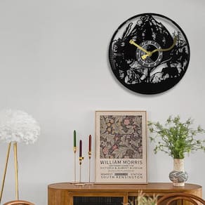 Material: Material da concha: metal Material do espelho: metal Material do mostrador: PVC Tamanho: 30 × 30 cm Peso: 2000 g Design exclusivo de paisagem florestal com silhuetas de árvores e vida selvagem, feito a partir de um disco de vinil para uma estética rústica inspirada na natureza. O movimento antiaderente de quartzo garante uma operação silenciosa, ideal para ambientes tranquilos em casa ou no escritório. Feito com mostrador de PVC durável e uma estrutura metálica para um design elegante e duradouro. Perfeito para amantes da natureza, entusiastas de atividades ao ar livre ou qualquer pessoa que queira adicionar um toque artístico ao seu espaço. Fácil de instalar, operado por bateria (AA), com um tamanho de 30 cm que se encaixa perfeitamente em qualquer parede.