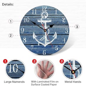 Material: Material da concha: MDF Material do espelho: MDF Material do mostrador: MDF Tamanho: 12 polegadas Peso: 400 g Tema náutico elegante com um design proeminente de âncora e corda, ideal para decoração inspirada na praia ou costeira. O movimento antiaderente de quartzo garante uma operação silenciosa, tornando-o perfeito para uma casa ou escritório tranquilo. 12 polegadas de diâmetro, ideal para exibição em salas de estar, cozinhas ou como parte da decoração de seu quarto com tema náutico. Feito com material MDF durável para uma construção leve e robusta, garantindo um uso duradouro. Operado por bateria (AA), fácil de instalar com um design simples e clássico que adiciona charme a qualquer parede.