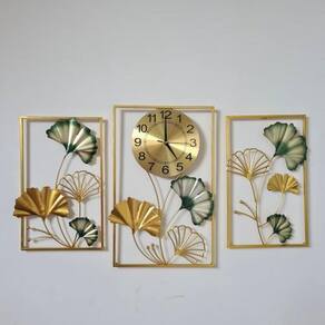 Muito elegante, arte em 3 peças, com detalhes de folhas dourada e verde. Simétrico, criativo e chique.