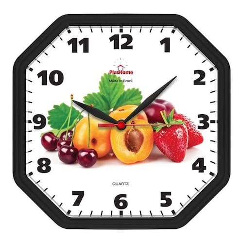 Relógio De Parede Para Cozinha Oitavado Frutas Preto