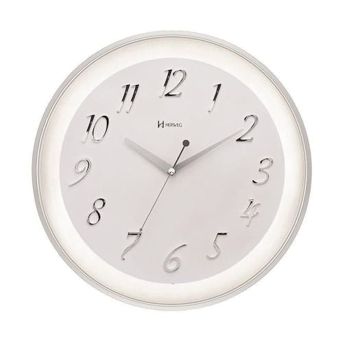 Relógio De Parede Prata Metálico Herweg 6832 único Relógio de Parede Prata Metálico Herweg 6831 único - Características Gerais do Produto: - Alimentação: Pilha AA ( não inclusa) - Funcionalidade: Mecanismo Sweep (Ponteiro de segundos contínuo); Detalhe do mostrador em alto relevo - Material: Visor de vidro cristal mineral; Plástico metalizado/injetado - Medidas: A: 34,6 x L: 34,6 x P: 5cm - Observações: Inclui suporte para pendurar; Botões de regulagem na parte traseira - Modelo referência do produto: 6832-070 Acompanha o produto: - 01 Relógio - Eletrônica - Garantia de 12 meses do Fabricante - Embalagem - Manual de Instruções Garantia: - 12 Meses de Garantia de Fábrica