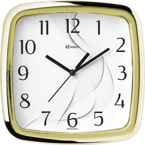 Relógio De Parede Quadrado Herweg 660026 23,6cm Dourado - Relógio De Parede Quadrado Herweg 660026 23,6cm