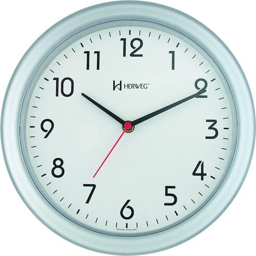 Relógio De Parede Quartz 28 Cm Prata - Prata Relógio de Parede Quartz 28 CM Prata - Prata - Relógio de Parede Quartz 28 CM 6634 Relógio de Parede Herweg Modelo 6634 Estilo Moderno Base de Plástico Medidas: 28 cm x 28 cm x 3 cm Visor de Plástico Cristal Mostrador Branco de Números pretos Usa Pilha AA (não incluso) Produto Mecanismo Quartz Step tic-tac Acompanha de fábrica e de 12 Meses.