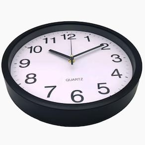 tipo de relógio: analógico formato: redondo material: termoplástico dimensões: 25 x 25 x 4 cm funciona através de uma pilha aa fácil ajuste. sistema eletrônico de quartz, não atrasa nem adianta.