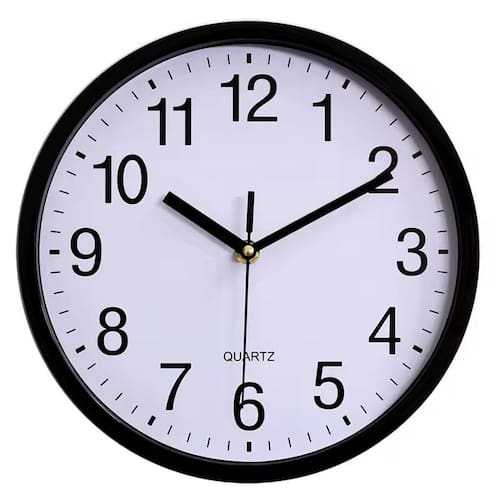 tipo de relógio: analógico formato: redondo material: termoplástico dimensões: 25 x 25 x 4 cm funciona através de uma pilha aa fácil ajuste. sistema eletrônico de quartz, não atrasa nem adianta.