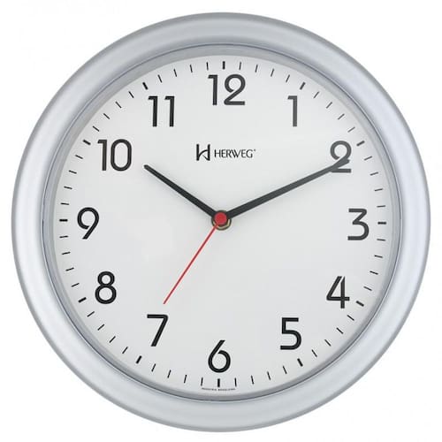 Relógio de Parede Redondo Prata Herweg 6634-70 Estilo Moderno Base em Plástico Pintado Visor de Acrílico Botoões de regulagem na parte traseira do produto Mecanismo Step Produto Nacional Cor Prata Usa 1 pilha AA que não acompanha o produto Medidas: 28 cm diâmetro x 3 cm Espessura Manual Certificado de de 12 meses Ean: 7897280325410