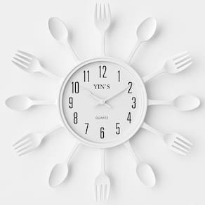 Relogio Parede Talheres Estilo Cozinha Retro Decorativo com Design Moderno Branco Multicoisa da Paju