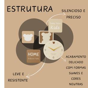 Relógio De Parede Urso Teddy Kids Silencioso Daifpro Df-097