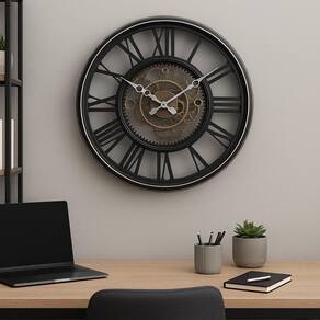 Design Clássico: O relógio apresenta um design intemporal com marcadores numéricos romanos, adicionando um toque vintage ao seu espaço.