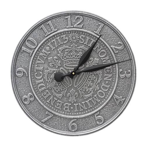 Exiba sua fé e amor pela liturgia com o Relógio de Parede Três Coroas da Whitehall Products, com 41 cm de diâmetro, ideal para ambientes internos e externos. A conhecida bênção, "Louvado seja o nome do Senhor", está inscrita em latim ao redor do mostrador.