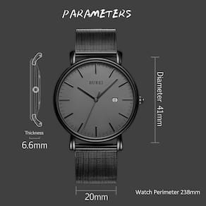 BUREI Relógio de pulso masculino moderno, minimalista, totalmente preto, à prova d'água, simples, ultrafino, analógico, quartzo, data com pulseira de malha de aço inoxidável, Preto, Minimalista - Design moderno: relógio fino de design minimalista moderno, linhas claras desenham o contorno de uma textura única. Este relógio simples é adequado para qualquer ocasião. O estilo minimalista deste relógio é perfeito para homens e mulheres. - Durável e de alta qualidade: espelho de vidro de alta dureza, resistente a arranhões, caixa leve de aço inoxidável 316L, certifique-se de que ficará ótimo nos próximos anos. Este relógio oferece uma aparência sofisticada, sem preços caros, esta é uma boa escolha. - Fácil de ler: grande redondo com movimento de quartzo japonês faz com que o relógio tenha um bom tempo. Data de exibição analógica nas 3 horas, é fácil de ler a hora. - À prova d'água de 3 ATM: adequado para uso diário, resistente a respingos e chuva; não adequado para mergulho, natação, snorkeling, trabalho relacionado à água. - Substituição por 30 dias por qualquer motivo; 2 anos de serviço de reparo por problemas de qualidade; mais do que prazer em ajudá-lo dentro de 12 horas para suas perguntas.