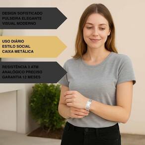 O relógio feminino Champion CF24742Q é a expressão máxima de elegância e modernidade. Com design sofisticado, destaca-se pela pulseira de elo duplo em aço prateado que confere charme e exclusividade. Ideal para o dia a dia e eventos sociais, ele combina com looks clássicos e contemporâneos. Seu mostrador com detalhes brilhantes realça o estilo refinado, enquanto a resistência à água de 3 ATM proporciona mais segurança para o uso cotidiano. Perfeito para quem busca praticidade sem abrir mão da beleza e da sofisticação.