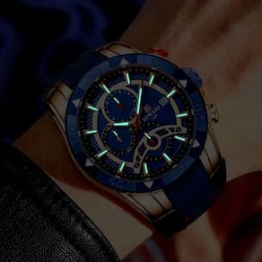 Este sofisticado relógio masculino combina a elegância do design analógico com a precisão e confiabilidade da tecnologia de quartzo. Feito com pulseira de silicone de alta qualidade, o relógio oferece um acabamento robusto e durável, que não apenas realça sua aparência sofisticada, mas também garante resistência ao desgaste diário.