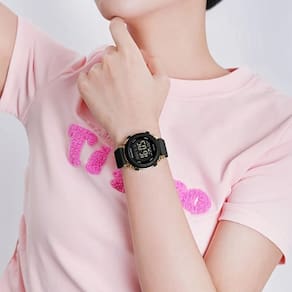 Experimente a fusão perfeita entre elegância e modernidade com este relógio digital voltado para mulheres de negócios. Apresentando um design sofisticado, ele é a combinação ideal de estilo e funcionalidade. Sua caixa arredondada e tela LCD são embelezadas por detalhes dourados, enquanto a pulseira de silicone é decorada com um gracioso padrão floral, o que o torna uma peça única e versátil.
