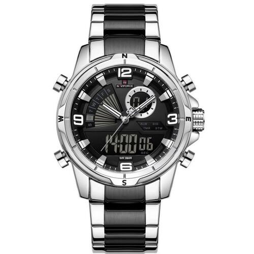 [Tecnologia Dual] Combinando a precisão do movimento digital com a clássica leitura analógica, este relógio oferece o melhor de dois mundos, perfeito para quem busca eficiência e estilo em um só lugar.[Conforto e Durabilidade] A pulseira feita de aço inoxidável não só garante durabilidade excepcional, mas também proporciona um ajuste confortável ao longo do dia com seu sofisticado fecho de bracelete.[Versatilidade no Design] O design fashion e casual deste relógio permite uma transição suave entre o escritório e atividades ao ar livre, combinando com diversos estilos sem esforço.[Resistência à Água] Com uma profundidade de resistência à água de até 3 Bar, aventure-se por chuva e umidade sem preocupações, enquanto seu visor Hardlex oferece proteção contra impactos.[Estilo Moderno] Equipado com um diâmetro de visor de 44mm e um impressionante estojo de liga, este item de moda é a escolha ideal para quem busca afirmar sua personalidade com sofisticação.