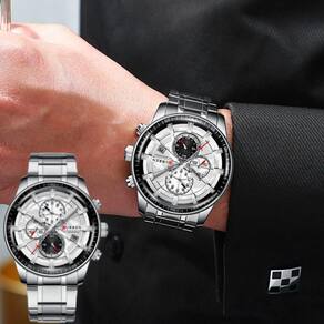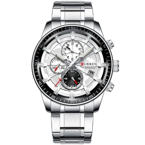 Relógio De Pulso Esportivo Masculino Com Pulseira De Aço Inoxidável Branco Prata