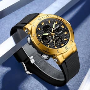 Relógio De Pulso Esportivo Masculino De Moda Com Display Duplo, Alarme Preto Dourado