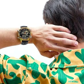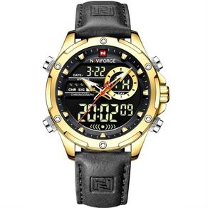Relógio De Pulso Masculino Design Esportivo Casual De Quartzo Impermeável Preto Dourado