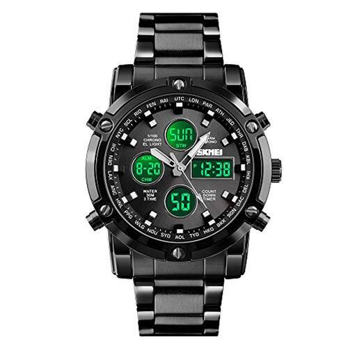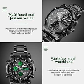 Função: 2 horas, cronógrafo, alarme, data, semana, luz LED, relógio de 12/24 horas, contagem regressiva