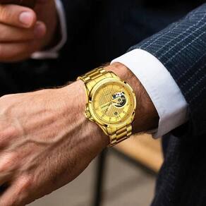 Relógio De Pulso Mecânicos Masculinos Marca Superior Luxo Automático Dourado