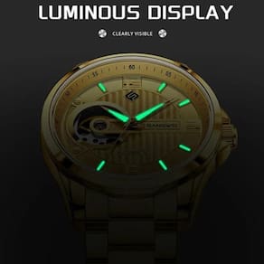 Cada detalhe deste relógio foi projetado para impressionar. Com um mostrador luminoso que brilha intensamente sob qualquer luz, proporciona facilidade ao ler as horas em diferentes ambientes. A elegância deste relógio é aprimorada pelo seu mostrador em formato arredondado, perfeito para quem valoriza o design clássico e sofisticado.