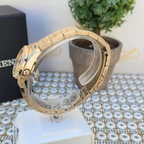 Marca: Orient Tipo de mostrador: Analógico Mecanismo: Automático Alimentação: Movimento do pulso Formato da Caixa: Redondo Cor da caixa: Dourado Cor da pulseira: Dourado Material do Vidro: Cristal Mineral Material da caixa: Aço Inox Material da pulseira: Aço Inox Tipo de Fecho: Dobrável Nível de Resistência à Água: 50 Metros Calendário: Sim Cronômetro: Não Alarme: Não Luz noturna: Não