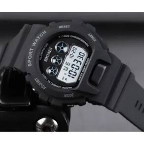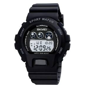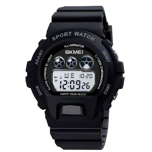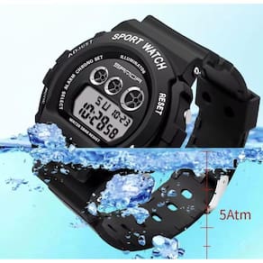 O relógio na imagem é o SKMEI 1775. É um relógio digital esportivo com as seguintes características: Design e Materiais: Possui corpo e pulseira de resina preta ou poliuretano PU , com caixa redonda de plástico ABS. A resistência à água é de 5 ATM, permitindo o uso para natação em águas rasas, mas não para mergulho. Funções: Inclui hora, data, dia da semana, alarme, cronômetro, temporizador, formato de 12/24 horas e luz de fundo LED de cor verde. Peso e Dimensões: Pesando cerca de 43 gramas, é considerado leve e confortável. O diâmetro do mostrador é de 45mm e a espessura é de 16mm. Cor da caixa: Preto. Cor do bisel: Preto. Material da correia: Resina. Cor da correia: Preto. Resistente à água. Acompanhe qualquer ocasião Marca: Não Informado Ean: 7908289223703