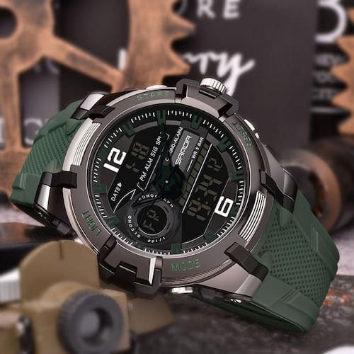 Característica: Cronômetro,luz de fundo,À prova de choque,Tela de LED,Luminous,Data automática,Calendário completo,À Prova D'Água,ALARME,nadar,Semana de Exibição