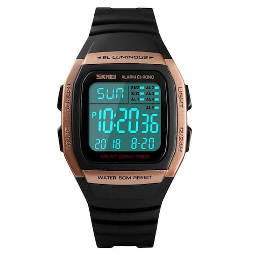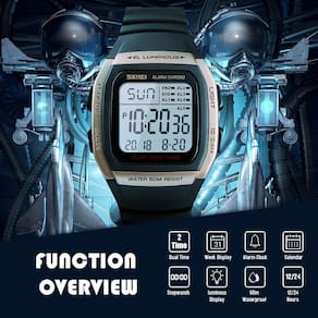 A marca SKMEI valorizou muito a excelente experiência do usuário para o comprador. Estamos comprometidos em fornecer os melhores produtos, o melhor preço e o melhor serviço. Estilo clássico da moda, design exclusivo, acabamento requintado, material de alta qualidade perfeito para todos os tipos de atividades internas e externas. * Este relógio de pulso é adequado para o estilo de vida masculino e feminino moderno, com uma mente mais jovem e uma vida casual colorida. * Além do design clássico e impressionante do mostrador, confere ao relógio uma aparência o, moderna e moderna, estilo fácil e execução limpa que faz com que pareça completamente atual em qualquer pulso. Vale a pena comprá-lo e é a excelente opção para presentes. Características do produto - Movimento de quartzo importado: fornece uma cronometragem precisa e precisa - Design casual e esportivo moderno. Combina qualidade, moda de ponta e valor — este é um bom presente para sua família e amigos. O complemento perfeito para vestir ou colecionar formal ou casual, serve para qualquer ocasião: 98 pés/30 m Resistente à água normal: resistente à água de 3 ATM, adequado para uso diário, pode suportar respingos e chuva. NÃO é adequado para mergulho, natação, mergulho com snorkel e trabalho relacionado à água Material da caixa: resina - Material da pulseira: resina - Superfície do espelho: vidro mineral Especificação - Diâmetro da caixa do mostrador: 2 polegadas/5,1 cm - Espessura da caixa do mostrador: 0,67 polegadas/1,7 cm - Largura da pulseira: 0,87 polegadas/2,2 cm - Comprimento total: 9,8 polegadas/25,0 cm - Tipo de fecho da pulseira: fivela - Peso do relógio: 2,5 onças/72 g NOTA *Para aumentar a vida útil do relógio, é recomendável que você não carregue água por muito tempo. *Para evitar arranhões durante o transporte, a caixa do relógio é coberta por uma película protetora. Por favor, retire a película protetora antes de usar. Pacote: Relógio esportivo digital masculino × 1 caixa de presente × 1 manual de instruções × 1