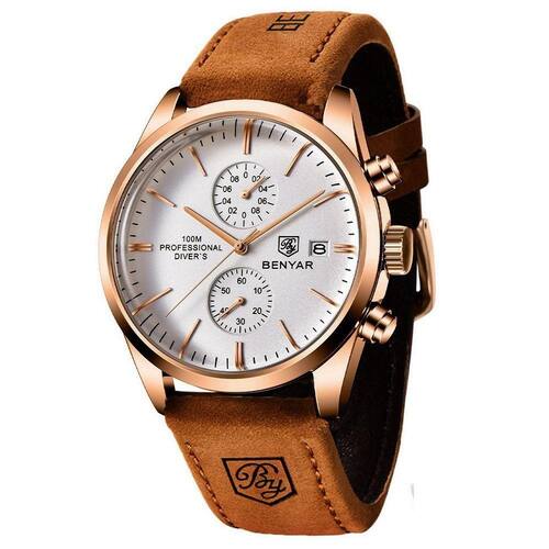 Relógio De Quartzo Esportivo Masculino Benyar Luxo Impermeável Cronógrafo Marrom